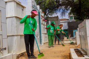 Logo pela manhã, muita gente acompanhou a primeira celebração realizada no Cemitério Central. Familiares e amigos visitaram os cemitérios para prestar homenagens aos que já se foram. Ao longo do dia, a Sesp realizou apoio logístico e serviços essenciais para que a comunidade pudesse celebrar a memória de seus entes queridos. Este trabalho já vinha sendo realizado pela equipe da Prefeitura de Juazeiro nos últimos dias. “Trabalhamos, incansavelmente, nos dias que antecederam o Dia de Finados para que as famílias pudessem prestar suas homenagens em um ambiente limpo e bem-cuidado. Realizamos a limpeza prévia dos cemitérios e áreas adjacentes, garantindo que tudo estivesse em ordem para receber os visitantes”, afirmou o secretário de Serviços Públicos, Charles Leal.