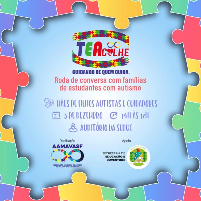 A Associação de Amigos do Autista do Vale do São Francisco (AAMAVASF), em parceria com a Prefeitura de Juazeiro, através da Secretaria de Educação e Juventude (Seduc), irá promover uma roda de conversa com responsáveis e cuidadores de estudantes da rede municipal de ensino, com Transtorno do Espectro Autista (TEA), no próximo sábado (03), a partir das 14h, no auditório da Seduc.