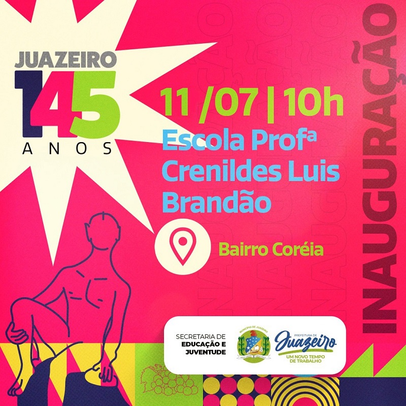 A Prefeitura de Juazeiro, por meio da Secretaria de Educação e Juventude (Seduc), comunica que a entrega da requalificação da Escola Municipal Professora Crenildes Luiz Brandão, divulgada anteriormente para segunda-feira (10), foi adiada para a terça-feira (11), às 10h da manhã, no bairro Coréia.