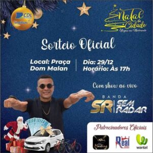 E a gente não estará sozinho: tem os patrocinadores, parceiros da campanha, o Bom Velhinho e a participação pra lá de especial da Banda Sem Radar que promete um show repleto de grandes sucessos do axé, pagode e pagofunk. Já viu que será um festão né? E você é nosso convidado especial! Chame seus amigos, sua família e venha se confraternizar conosco!